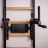Είναι ένας συνδυασμός πολυλειτουργικότητας και σχεδίασης με την αντοχή του επαγγελματικού αθλητικού εξοπλισμού. Το σετ περιλαμβάνει τα ακόλουθα στοιχεία: πολύζυγο, μεταλλική ράβδο έλξης, μπάρα βύθισης και πάγκο γυμναστικής. Τα μεταλλικά στοιχεία έχουν ορθογώνιο σχήμα 4 x 5 εκ. και πάχος 2 εκ. Έχουν επικαλυφθεί με πούδρα σε μαύρο ματ, που ενισχύει την αντοχή τους. Η λεπτομέρεια έχει επιτευχθεί χάρη στη χρήση σύγχρονων τεχνολογιών κοπής και σύνδεσης με λέιζερ. Εννέα σκαλοπάτια από ξύλο οξιάς ταιριάζουν τέλεια στα μεταλλικά προφίλ. Ο συνδυασμός μετάλλου και φυσικού ξύλου δίνει ένα εφέ ενός κομψού και λειτουργικού αθλητικού επίπλου, το οποίο ταιριάζει απόλυτα σε μια ποικιλία εσωτερικών χώρων. Ο πάγκος γυμναστικής είναι κατασκευασμένος από πολυουρεθάνη και είναι αναστρέψιμος. Κατασκευασμένο σύμφωνα με τα ευρωπαϊκά πρότυπα ασφαλείας PN-EN 12346:2001, PN-EN 913:2008 για εξοπλισμό γυμναστικής. Περιλαμβάνει κιτ συναρμολόγησης και υλικά εγκατάστασης. Δεν είναι δυνατή η τοποθέτηση σε τοίχο από γυψοσανίδα και σε διαχωριστικό τοίχο λεπτότερο από 12 εκ.