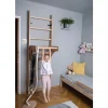 Πολυλειτουργικό, επιτοίχιο πολύζυγο με μεταβαλλόμενο ύψος οροφής (μπορεί να χρησιμοποιηθεί και σαν γραφείο), κρίκους γυμναστικής και κούνια. Μπορεί να χρησιμοποιηθεί όχι μόνο από παιδιά, αλλά και από ενήλικες καθώς το μέγιστο βάρος του χρήστη είναι 120 kg και το ύψος της ράβδου έλξης μπορεί να τροποποιηθεί. Αυτό επιτρέπει τη ρύθμιση στο ύψος του χρήστη. Θα γίνει η αγαπημένη παιδική χαρά του παιδιού σας και θα προσφέρει την ευκαιρία για μια τακτική και αποτελεσματική προπόνηση στους ενήλικες. Κατασκευασμένο από μασίφ ξύλο οξιάς, λαδωμένο στο χέρι και σύμφωνα με τα ευρωπαϊκά πρότυπα ασφαλείας PN-EN 12346:2001, PN-EN 913:2008 για εξοπλισμό γυμναστικής. Περιλαμβάνει κιτ συναρμολόγησης και υλικά εγκατάστασης. Δεν είναι δυνατή η τοποθέτηση σε τοίχο από γυψοσανίδα και σε διαχωριστικό τοίχο λεπτότερο από 10 εκ.