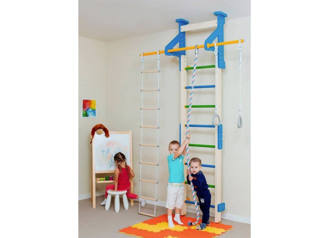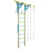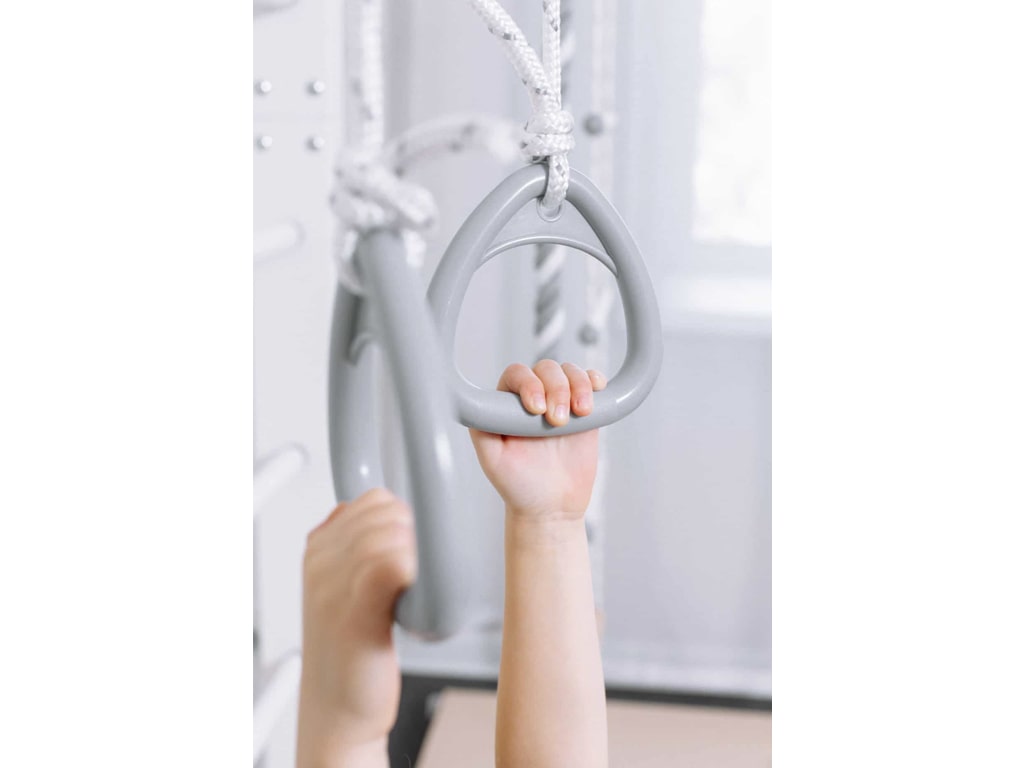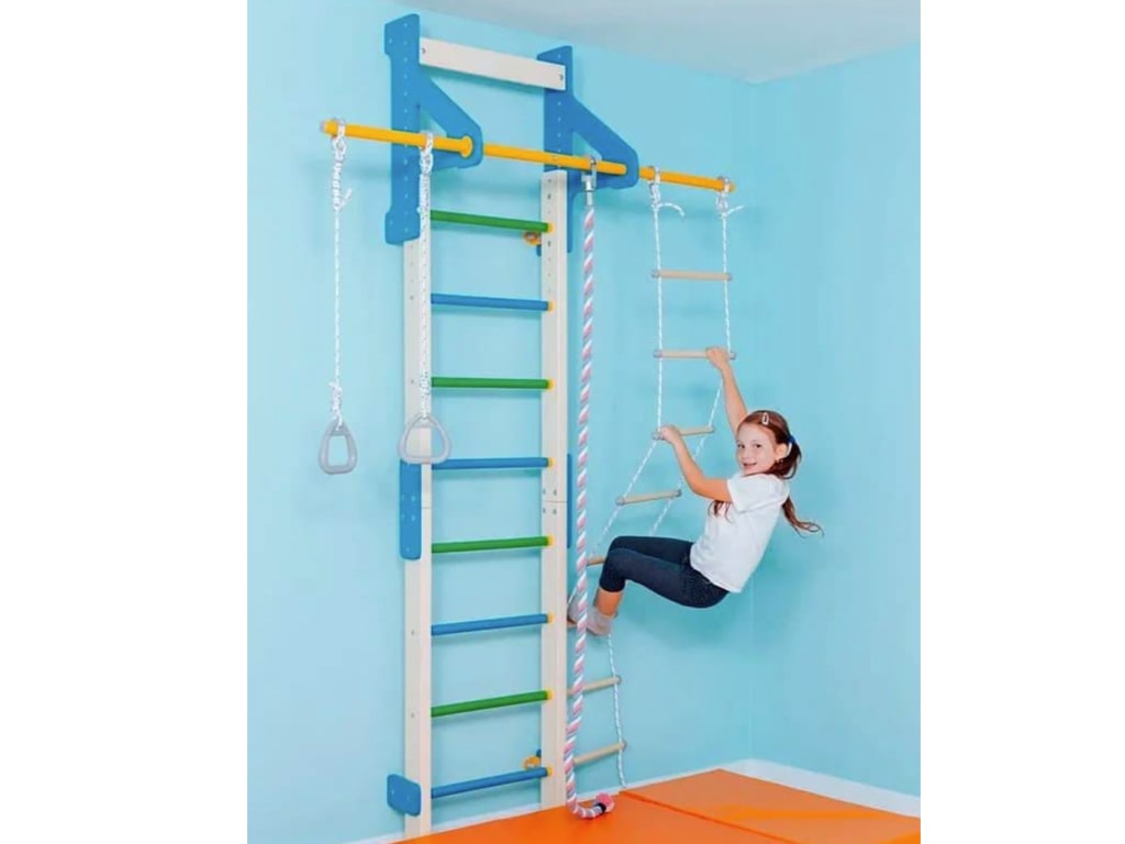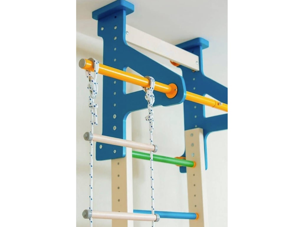Η κατασκευή από ξύλο πεύκου και οξιάς χαρίζει στο προϊόν υψηλή αντοχή και φυσικό χαρακτήρα, ενώ το φινίρισμα με οικολογικό ακρυλικό βερνίκι ή βαφή νερού το καθιστά ασφαλές και φιλικό προς το περιβάλλον. Το σετ περιλαμβάνει ξύλινη σκάλα, σταθερή μπάρα, σχοινί αναρρίχησης, αιωρούμενη σκάλα και κρίκους γυμναστικής, προσφέροντας ευελιξία και ποικιλία ασκήσεων.