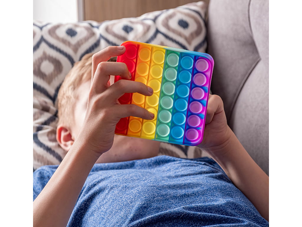 Το τετράγωνο Pop It, είναι το ιδανικό παιχνίδι για όσους αγαπούν να “σπάνε” φούσκες από bubble wrap. Κατασκευασμένο από μαλακό και ανθεκτικό υλικό, προσφέρει μια ευχάριστη αισθητηριακή εμπειρία μέσω της αφής και του ήχου του “pop” σε κάθε πίεση.