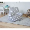 Μοντέρνο άνετο πουφ γκρι με άσπρα αστέρια. Γέμισμα από μικρά μπαλάκια φελιζόλ. Το κάλυμμα βγαίνει και πλένεται. Διαστάσεις: 60 x 60 x 58 εκ. Ηλικία: 2 εως 10 ετών