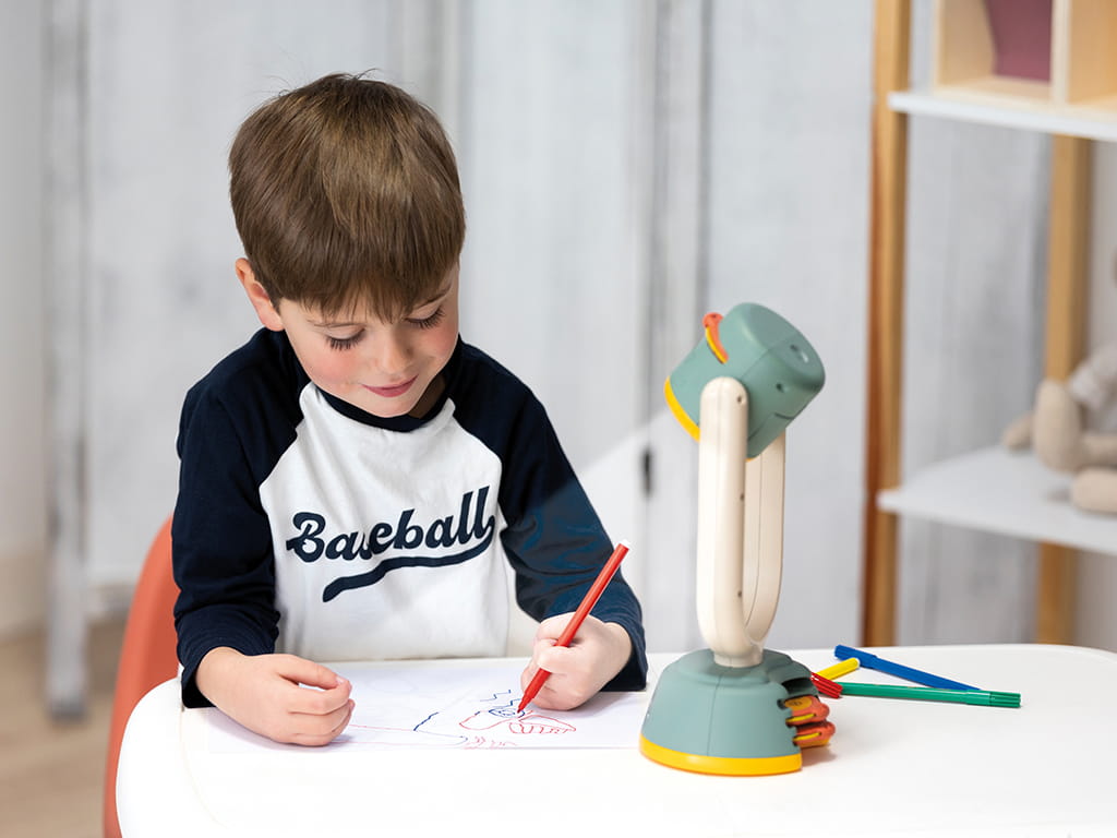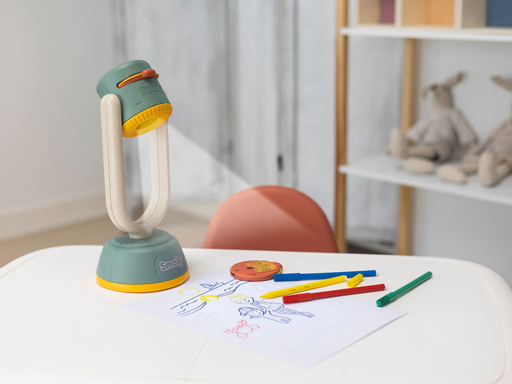 Ο προβολέας ζωγραφικής της Smoby μετατρέπει τη ζωγραφική σε παιχνίδι για παιδιά από 4 ετών και άνω. Με απλή λειτουργία, τα παιδιά μπορούν να προβάλλουν και να αντιγράψουν εικόνες ανεξάρτητα, ενισχύοντας τη δημιουργικότητα και την λεπτή τους κινητικότητα. Αρκεί να ανάψετε το φως, να εισάγετε μία κασέτα μοτίβων, να τοποθετήσετε τον προβολέα στη σωστή θέση και να εστιάσετε με τον περιστροφικό διακόπτη. Οι εικόνες προβάλλονται καθαρά σε χαρτί, μαυροπίνακα, τοίχο ή ακόμα και στο ταβάνι, και μπορούν εύκολα να αντιγραφούν από τα παιδιά.
