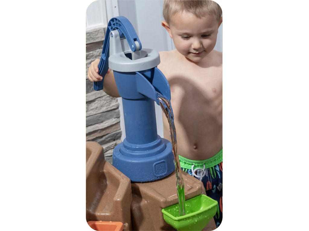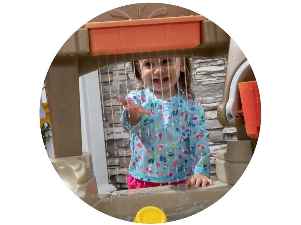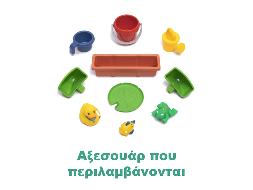 Χτίζει τα θεμέλια για μάθηση χρησιμοποιώντας τις πέντε αισθήσεις για να κατανοήσουν τον κόσμο γύρω τους. Βοηθά τα παιδιά να αναγνωρίσουν και να διαχειριστούν τα συναισθήματα, να χτίσουν υγιείς σχέσεις και να μάθουν να μοιράζονται και να εναλλάσσονται με άλλους. Προωθεί το συντονισμό χεριού-ματιού, την εκτέλεση ακριβών κινήσεων και τη χρήση των μυών του χεριού και του καρπού των παιδιών. Αυτό το παιχνίδι νερού εξωτερικού χώρου για νήπια είναι εξαιρετικά ανθεκτικό. Εύκολο στο καθάρισμα: Χρησιμοποιήστε απολυμαντικά μαντηλάκια ή οικιακά καθαριστικά όποτε θέλετε. Η λεκάνη νερού χωράει έως και 41 λίτρα νερού. Απαιτείται συναρμολόγηση από ενήλικες. Στο κουτί θα βρείτε: Λίμνη νερού με κανάλια και δίσκο, αντλία νερού, χοάνες, στροβιλιστής που ενεργοποιείται με νερό, σετ αξεσουάρ 10 τεμαχίων. Έχει διαστάσεις 101,6 εκ. x 76,2 χ 97,2 εκ. και είναι αρκετά μεγάλη ώστε να μπορούν να κάθονται μικρότερα παιδιά σα να είναι πισίνα (πάντα με την επίβλεψη των γονέων). Ηλικία: 2+