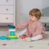 Επιπλέον, τα δαχτυλίδια έχουν διαφορετικές υφές, κάτι που διεγείρει την αίσθηση της αφής. Το παιχνίδι μπορεί να χρησιμοποιηθεί και ως κύλινδρος τοποθετώντας και τα δύο καπάκια πάνω και κάτω. Είναι κατασκευασμένο στην Ισπανία, με 100% οικολογικά υλικά και 100% ανακυκλώσιμο. Εύκολο στον καθαρισμό και την απολύμανση.