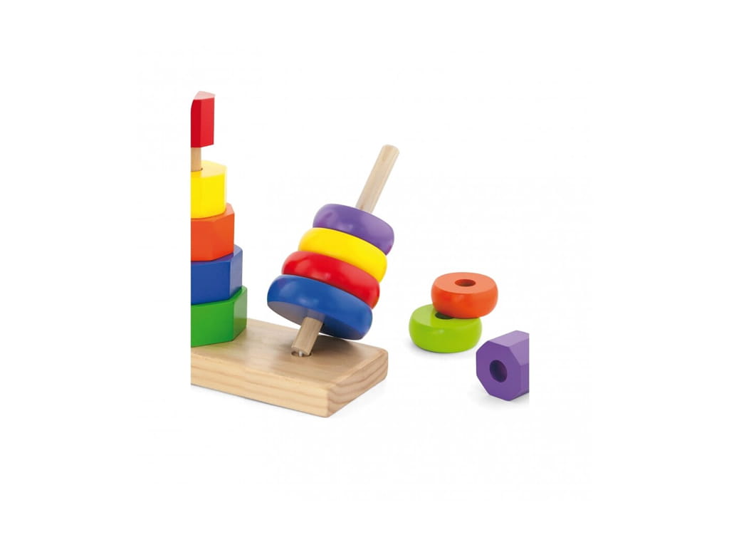 Ένα κλασικό εκπαιδευτικό ξύλινο παιχνίδι ταξινόμησης, ιδανικό για μικρά παιδιά που κάνουν τα πρώτα τους βήματα στη μάθηση μέσα από το παιχνίδι. Η τριπλή ξύλινη βάση επιτρέπει στα παιδιά να τοποθετούν και να ταξινομούν τα κομμάτια δημιουργώντας μικρούς πύργους, ενώ ταυτόχρονα μαθαίνουν να αναγνωρίζουν σχήματα, μεγέθη και χρώματα.