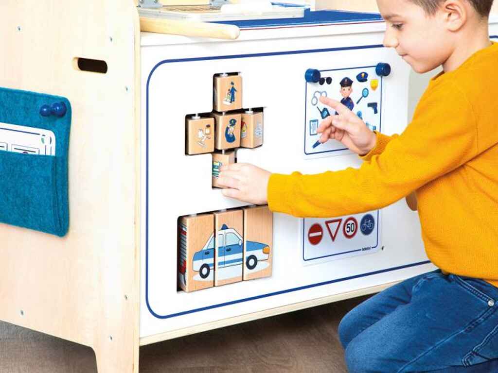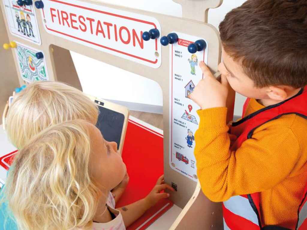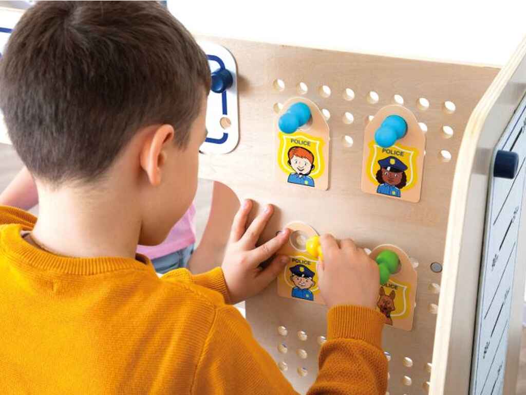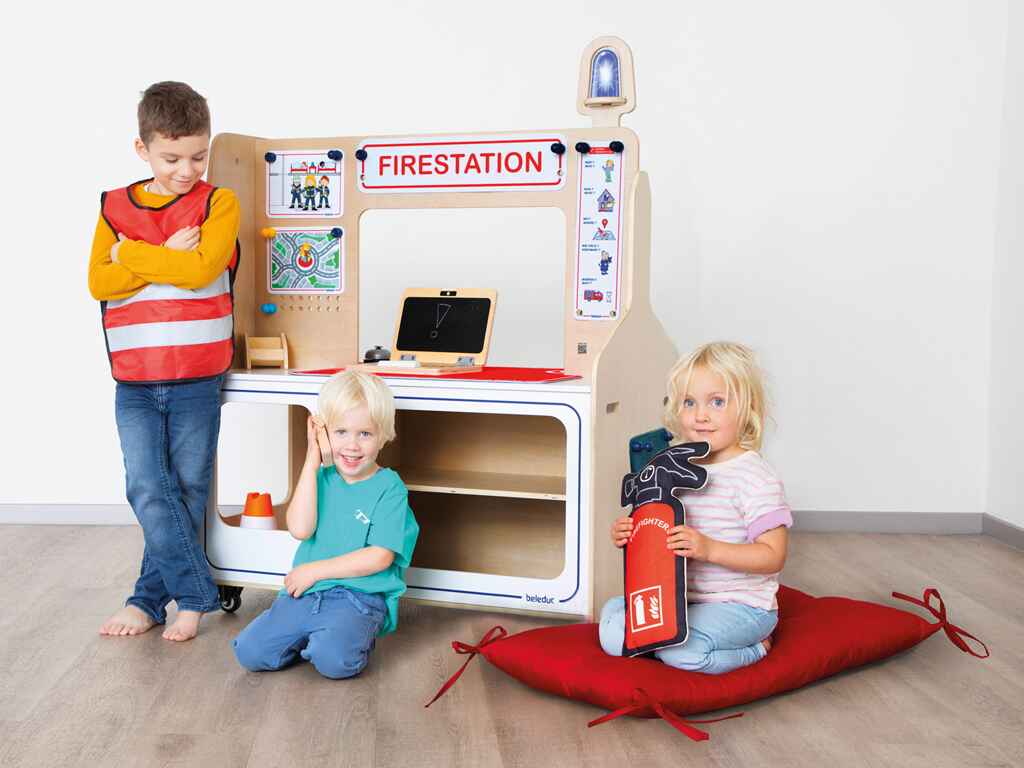 Με τον έξυπνο σχεδιασμό της, η βάση είναι προσβάσιμη από όλες τις πλευρές, διευκολύνοντας το ταυτόχρονο παιχνίδι από περισσότερα παιδιά. Η εναλλαγή μεταξύ της αστυνομικής και της πυροσβεστικής θεματικής γίνεται εύκολα με τη διπλής όψης υφασμάτινη επιφάνεια και τα αντίστοιχα ξύλινα στοιχεία. Τα παιδιά μπορούν να μάθουν για τον ρόλο και το έργο των πυροσβεστών και των αστυνομικών, να αναγνωρίσουν εξοπλισμό και οχήματα, αλλά και να δημιουργήσουν δικές τους αποστολές, βασισμένες στις κάρτες εκμάθησης και στις ομαδικές ξύλινες φιγούρες.