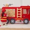 Ένα ξύλινο πυροσβεστικό όχημα υψηλής ποιότητας που περιλαμβάνει όλα τα απαραίτητα στοιχεία για την κατάσβεση πυρκαγιών, όπως σκάλα, μάνικα, κρουνό, εικονικές φλόγες, πληροφορίες ασφάλειας σε περιστρεφόμενους πίνακες, σειρήνα με πραγματικό ήχο, ταχύτητες, τσεκούρι, πυροσβεστήρα κ.α., όλα κατασκευασμένα από ξύλο.