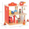 Ο ξύλινος πυροσβεστικός σταθμός είναι ένα εκπληκτικό και ασφαλές παιχνίδι που ενθουσιάζει τα παιδιά και τους επιτρέπει να εξερευνήσουν τη συναρπαστική δουλειά των πυροσβεστών μέσα από το παιχνίδι ρόλων. Κατασκευασμένο από ασφαλές, υψηλής ποιότητας ξύλο και βαμμένο με ασφαλή χρώματα νερού, προσφέρει ανθεκτικότητα και ασφάλεια για τα παιδιά. Το σετ περιλαμβάνει ένα parking για το πυροσβεστικό όχημα, ένα ελικόπτερο, έπιπλα για το σταθμό, καθώς και 2 πυροσβέστες, έτοιμους να αντιμετωπίσουν οποιαδήποτε πυρκαγιά. Επίσης, περιλαμβάνει κρουνό, κουδουνάκι, κώνους, φλόγα, σκάλα και κουβά, προσφέροντας όλα τα απαραίτητα αξεσουάρ για να δημιουργήσουν ρεαλιστικά σενάρια διάσωσης και κατάσβεσης.