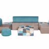 Σαλονάκι κατασκευασμένο από αφρώδες υλικό υψηλής πυκνότητας και επενδυμένο με ύφασμα υψηλής ποιότητας και αντοχής σε διάφορα χρώματα της επιλογής σας. Αποτελείται από έναν καναπέ, 2 πολυθρονάκια και 2 γωνίες σύνδεσης. Τα κομμάτια τοποθετούνται σχηματίζοντας σχήμα «Π». Οι πλάτες του καναπέ και της πολυθρόνας ανοίγουν προς τα πίσω. Υπάρχει η δυνατότητα το σαλονάκι να φέρει επένδυση δερματίνης ή ναϊλόπανου για μεγαλύτερη αντοχή. Όλα τα καλύμματα βγαίνουν και πλένονται εύκολα Διαστάσεις: 220 x 110 x 50 εκατοστά (συνολικά)