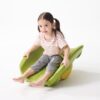 Ο σχεδιασμός των δύο υπερυψωμένων πλευρών επιτρέπει στα παιδιά να κρατιούνται ενώ κάθονται στη σανίδα, εξασφαλίζοντας ασφάλεια και σταθερότητα. Το κάτω μέρος της βάσης είναι σχεδιασμένο με αυλακώσεις για ασφαλές κράτημα όταν τα παιδιά ξαπλώνουν στη σανίδα.