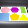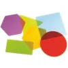 6 μεγάλα σχήματα σε διάφορα χρώματα (ροζ, μπλε, κίτρινο, πράσινο, πορφυρό και πορτοκαλί – τετράγωνο, ορθογώνιο, κύκλος, τρίγωνο, πεντάγωνο και εξάγωνο). Χρησιμοποιήστε τα για την αναγνώριση σχήματος και χρώματος, χρήση ως πρότυπα για υποστήριξη μαθηματικής ανάπτυξης. Προτείνεται για χρήση σε φωτεινό πίνακα. Διαστάση: 20 εκ. περίπου