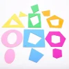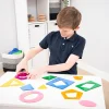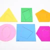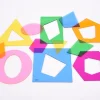 Ιδανικά για την εκμάθηση σχημάτων, χρωμάτων, ανάμειξη χρωμάτων, ως στένσιλ, σφηνώματα καθώς και για την εκμάθηση μαθηματικών όρων όπως πλευρά, σημείο, καμπύλη, επίπεδο, 2D, στερεό, 3D, γωνία και συμμετρία. Είναι κατασκευασμένα από ημιδιαφανές ακρυλικό 3 χιλ. Είναι ιδανικά για χρήση σε φωτεινό πάνελ. Διαθέτουν μια τρύπα 2,5 χιλ. στο επάνω μέρος, για να τα κρεμάσετε και να δημιουργείσετε συναρπαστικές χρωματικές σκιές.