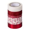 Σελοτέιπ χάρτινες ιδανικές για διακόσμηση σε διαφορετικά πάχη και μήκη. Το σετ περιλαμβάνει 5 ρολά (1 x λευκή glitter 1,2 εκ. x 2 μ., 1 x κόκκινη glitter, 1,2 εκ. x 2 μ., 1 x κόκκινη πουά, 0,6 εκ. x 6,5 μ., 1 x λευκή με κόκκινα φύλλα, 1,8 εκ. x 6,5 μ., 1 x κόκκινη μεταλλική, 1,2 εκ. x 6,5 μ.)