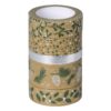 Σελοτέιπ χάρτινες ιδανικές για διακόσμηση σε διαφορετικά πάχη. Το σετ περιλαμβάνει 4 ρολά σε χρώμα κραφτ και διαφορετικά σχέδια με πράσινες και ασημί μεταλλικές λεπτομέρειες και 1 ρολό σε ασημί μεταλλικό χρώμα. Όλα τα ρολά έχουν μήκος 5 μ.