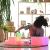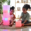 Σετ από 12 κύβους σε 2 μεγέθη που ανάβουν και αλλάζουν χρώμα όταν περιστρέφονται. Ιδανικοί για αισθητηριακό παιχνίδι. Κάθε κύβος απαιτεί 2 x μπαταρίες AA (δεν περιλαμβάνονται). Κατασκευασμένοι από πλαστικό.