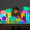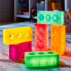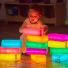 Σετ από 12 φωτιζόμενα τούβλα. Κάθε τούβλο παραμένει φωτισμένο για 3 λεπτά και στη συνέχεια θα χρειαστεί να χτυπήσετε ξανά για να ανάψει. Ιδανικά για αισθητηριακό παιχνίδι. Κατασκευασμένα από πλαστικό. Είναι επαναφορτιζόμενα και χρειάζονται περίπου 3-4 ώρες φόρτισης, για περίπου 2,5 ώρες χρήσης. Περιλαμβάνονται 2 καλώδια USB, το κάθε ένα φορτίζει 3 τούβλα. Διαστάσεις: 21,2 Χ 10 Χ 6,6 εκ. Ηλικία: 10 μ.+