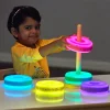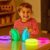Το σετ αποτελείται από 5 φωτιζόμενους και επαναφορτιζόμενους δίσκους σε ξύλινη βάση, οι οποίοι προσφέρουν στα παιδιά έναν διαφορετικό τρόπο να εξερευνήσουν το φως, τα χρώματα και τις υφές. Κάθε δίσκος έχει διαφορετικά απτικά ερεθίσματα και ανάβει για 1 λεπτό και στη συνέχεια θα χρειαστεί να χτυπήσετε ξανά για να ανάψει. Ιδανικοί για αισθητηριακό παιχνίδι. Κατασκευασμένοι από πλαστικό και σιλικόνη. Περιλαμβάνεται καλώδιο φόρτισης USB.