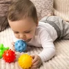 - Το σετ αποτελείται από 4 μπαλάκια διαφορετικού μεγέθους και υφής που βοηθούν στην ανάπτυξη των αισθήσεων και των κινήσεων.