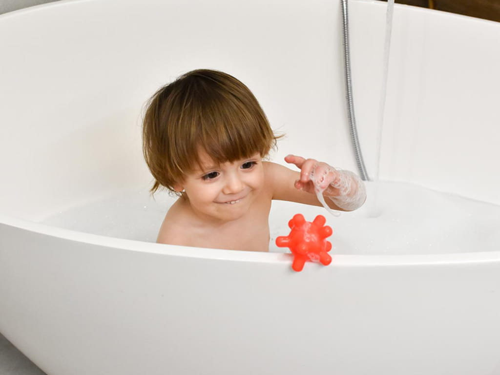Ιδιαίτερα κατά τους πρώτους μήνες ζωής, ένα ήπιο μασάζ με το μπαλάκι στην πλάτη, στα ποδαράκια ή στις παλάμες συμβάλλει στη χαλάρωση του βρέφους, προσφέροντας αίσθημα άνεσης και διευκολύνοντας τον ύπνο. Παράλληλα, η χρήση τους στο μπάνιο μετατρέπει τη διαδικασία σε μια ευχάριστη αισθητηριακή εμπειρία.