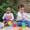 Το παιχνίδι είναι απολύτως ασφαλές για βρέφη από 0 μηνών, καθώς κατασκευάζεται από μη τοξικά υλικά που είναι κατάλληλα ακόμα και για μωρά που βρίσκονται στη φάση της οδοντοφυΐας. Επιπλέον, ο σχεδιασμός του βοηθά στη βελτίωση της λεπτής κινητικότητας καθώς τα παιδιά πιάνουν, κρατούν και στοιβάζουν τους κύβους, ενώ παράλληλα εισάγονται στις βασικές έννοιες των αριθμών, των σχημάτων και των ζώων.
