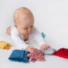 Κάθε σακουλάκι διαθέτει αποσπώμενο προστατευτικό κάλυμμα που πλένεται, κάτι ιδιαίτερα σημαντικό για χρήση από βρέφη. Το εσωτερικό βαμβακερό σακουλάκι καθαρίζεται επιφανειακά, διατηρώντας την υγιεινή του παιχνιδιού.