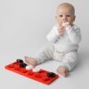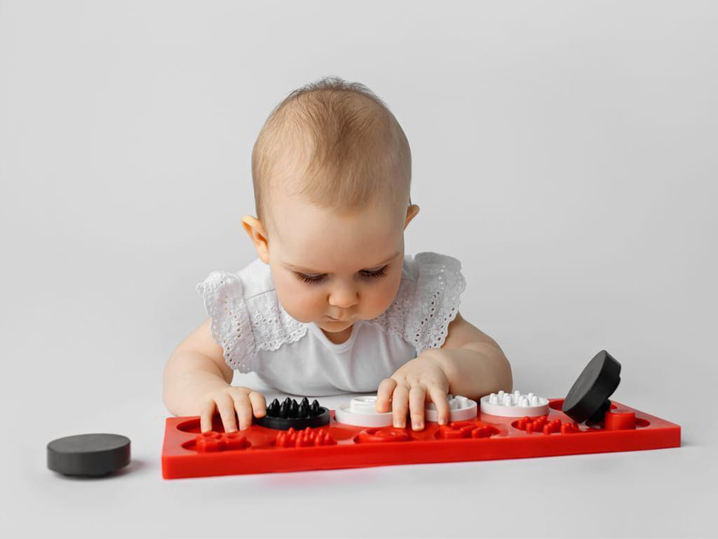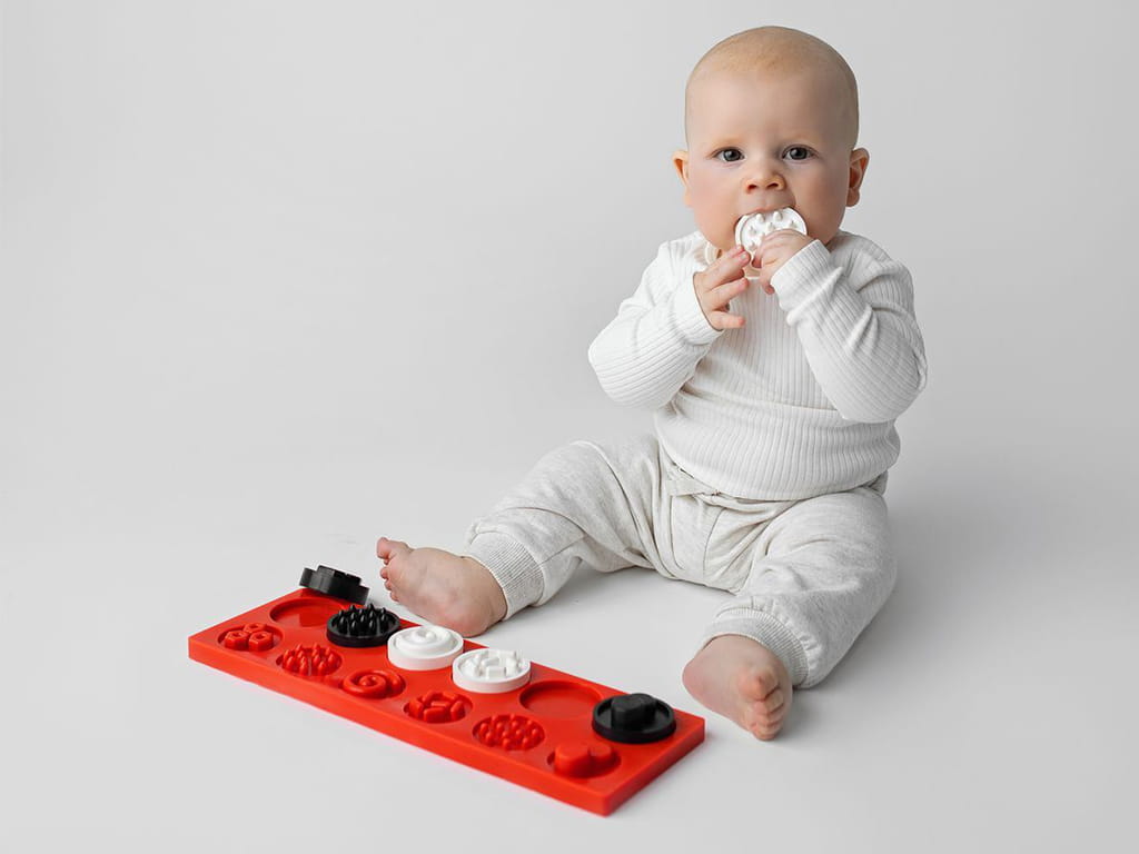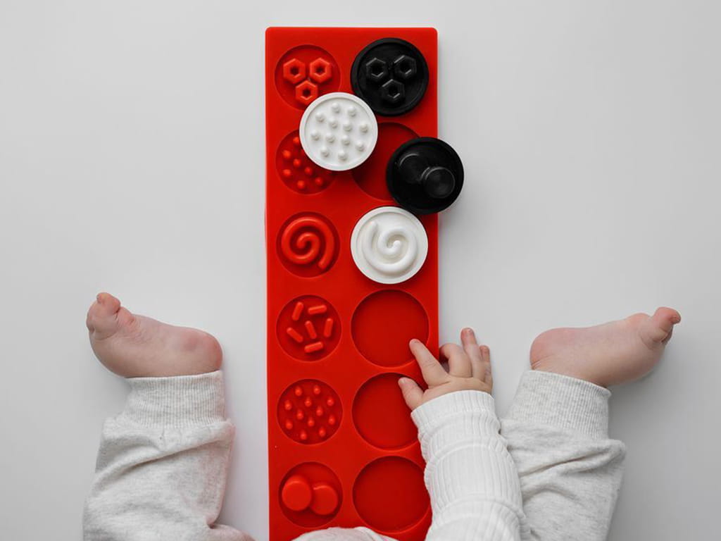 Το παιχνίδι είναι βασισμένο σε αντιθέσεις χρωμάτων (μαύρο, άσπρο, κόκκινο), ιδανικό για τα πρώτα στάδια οπτικής ανάπτυξης, καθώς τα μωρά αναγνωρίζουν πρώτα αυτά τα χρώματα. Το μαύρο και το άσπρο τραβούν την προσοχή, υποστηρίζοντας τη οπτική αντίληψη και ενισχύοντας τη συγκέντρωση του παιδιού.