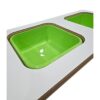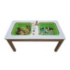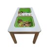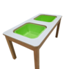 - Διπλή Θέση Λεκάνης: Το τραπέζι διαθέτει δύο ξεχωριστές λεκάνες που μπορούν να γεμιστούν με υλικά όπως ξυλαράκια, φύλλα, πηλό, πλαστελίνη, άμμο, χρώματα, υγρά υλικά, ρύζι, μακαρόνια, άμμο κ.α.