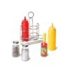 Σετ αλατοπίπερα συσκευασμένα σε ένα εύχρηστο μεταλλικό κουτί για να κρατάτε τα πάντα οργανωμένα. Περιλαμβάνει στιβαρό μεταλλικό κουφέτα με χερούλι, αλάτι και πιπέρι που “τινάζει”, καυτερή σάλτσα που “χύνει” και κέτσαπ και μουστάρδα που “ψιχνίζει” κορδόνι.