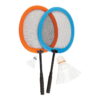 Οι ρακέτες διαθέτουν πλαστικό πλαίσιο με πλέγμα από πολυεστέρα και μαλακή λαβή αφρού, για άνετο κράτημα και εύκολη εναλλαγή μεταξύ χτυπημάτων forehand και backhand. Το σετ περιλαμβάνει ένα μεγάλο πλαστικό φτερό με foam βάση και μήκος 18,5 εκ. και ένα κανονικού μεγέθους ώστε τα παιδιά να εξασκούν δεξιοτεχνία και ακρίβεια.