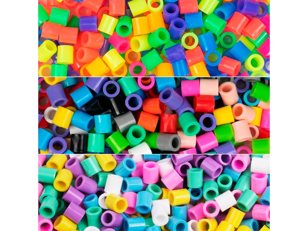 Το σετ περιλαμβάνει 5000 χάντρες σε τρεις μοναδικούς συνδυασμούς χρωμάτων: 10 βασικά χρώματα, νέον αποχρώσεις για φωτεινές δημιουργίες και παστέλ τόνους για απαλά, καλλιτεχνικά αποτελέσματα. Επίσης, περιλαμβάνει πέντε διαφανείς βάσεις διαστάσεων 16 x 16 εκ., οι οποίες σας επιτρέπουν να τοποθετήσετε από κάτω τα μοτίβα για εύκολη καθοδήγηση.