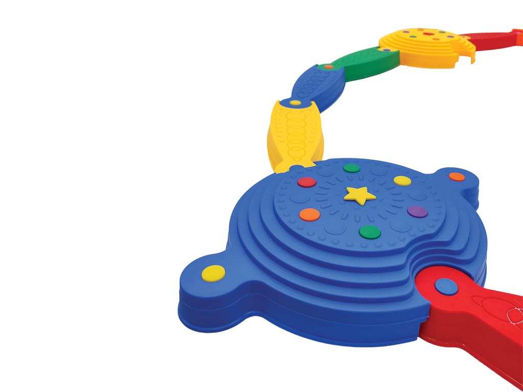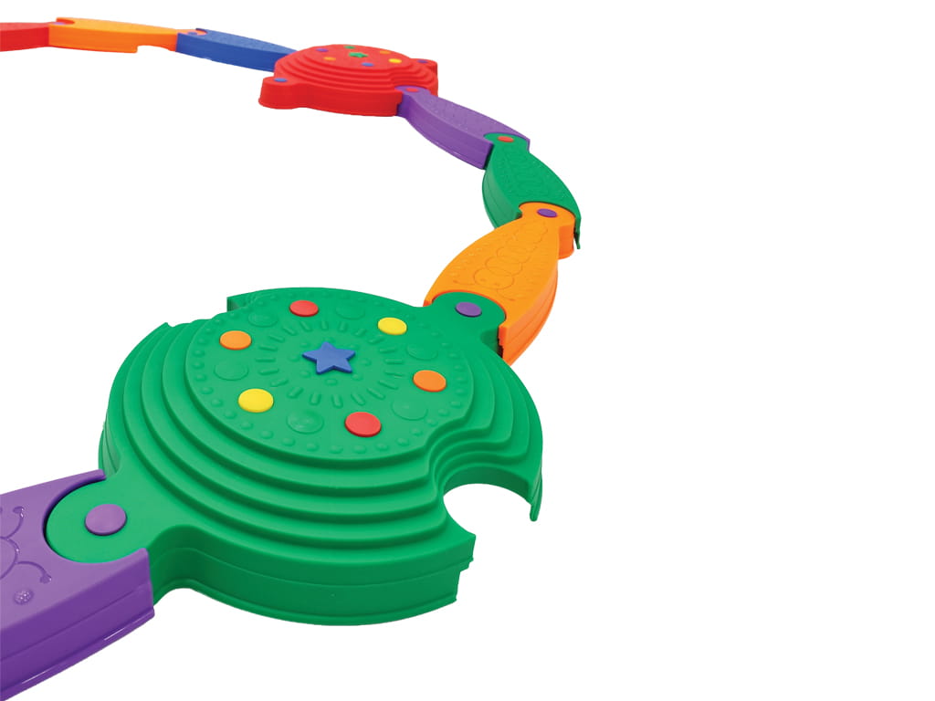 Τα κομμάτια είναι κατασκευασμένα από ανθεκτικό, πλαστικό υλικό και διαθέτουν επιφάνειες με ανάγλυφες υφές και προεξοχές για επιπλέον αισθητηριακή διέγερση και σταθερότητα. Είναι ασφαλή στη χρήση, προσφέροντας υποστήριξη καθώς τα παιδιά περπατούν, πηδούν ή ισορροπούν επάνω τους.