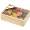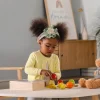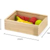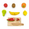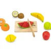 Αυτό το σετ κοπής αποτελεί ιδανική επιλογή για τα πρώτα παιχνίδια μαγειρικής των παιδιών. Κάθε σετ περιλαμβάνει μία ξύλινη σανίδα κοπής και ένα μαχαίρι, που επιτρέπει στα παιδιά να κόβουν φρούτα και λαχανικά σε μισά κομμάτια και να τα επανατοποθετούν εύκολα με Velcro. Το παιχνίδι προάγει τη λεπτή κινητικότητα, τη φαντασία και τις δεξιότητες συντονισμού χεριού-ματιού, ενώ ταυτόχρονα προσφέρει ασφαλή διασκέδαση.