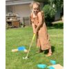 Σετ minigolf από στιβαρό μασίφ FSC® 100% πιστοποιημένο ξύλο, κατάλληλο για εσωτερικούς και εξωτερικούς χώρους. Είναι ένα ευέλικτο και κλασικό παιχνίδι που είναι κατάλληλο για παίκτες πολλών ηλικιών χάρη στα μπαστούνια του που προσαρμόζονται σε 3 διαφορετικά μήκη. Προάγει την επιδεξιότητα και τη συγκέντρωση.