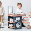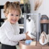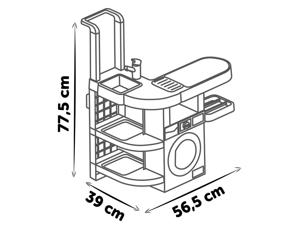 Το σετ διαθέτει τέσσερις περιοχές παιχνιδιού, πλυντήριο ρούχων, νεροχύτη για πλύσιμο στο χέρι, ράγα για στέγνωμα ρούχων και σιδερώστρα. Αυτές οι περιοχές δίνουν στα παιδιά τη δυνατότητα να εξερευνήσουν τις καθημερινές δουλειές του σπιτιού μέσα από ρεαλιστικές και διαδραστικές λειτουργίες, ενώ παράλληλα αναπτύσσουν λεπτές κινητικές δεξιότητες και συντονισμό χεριού-ματιού.