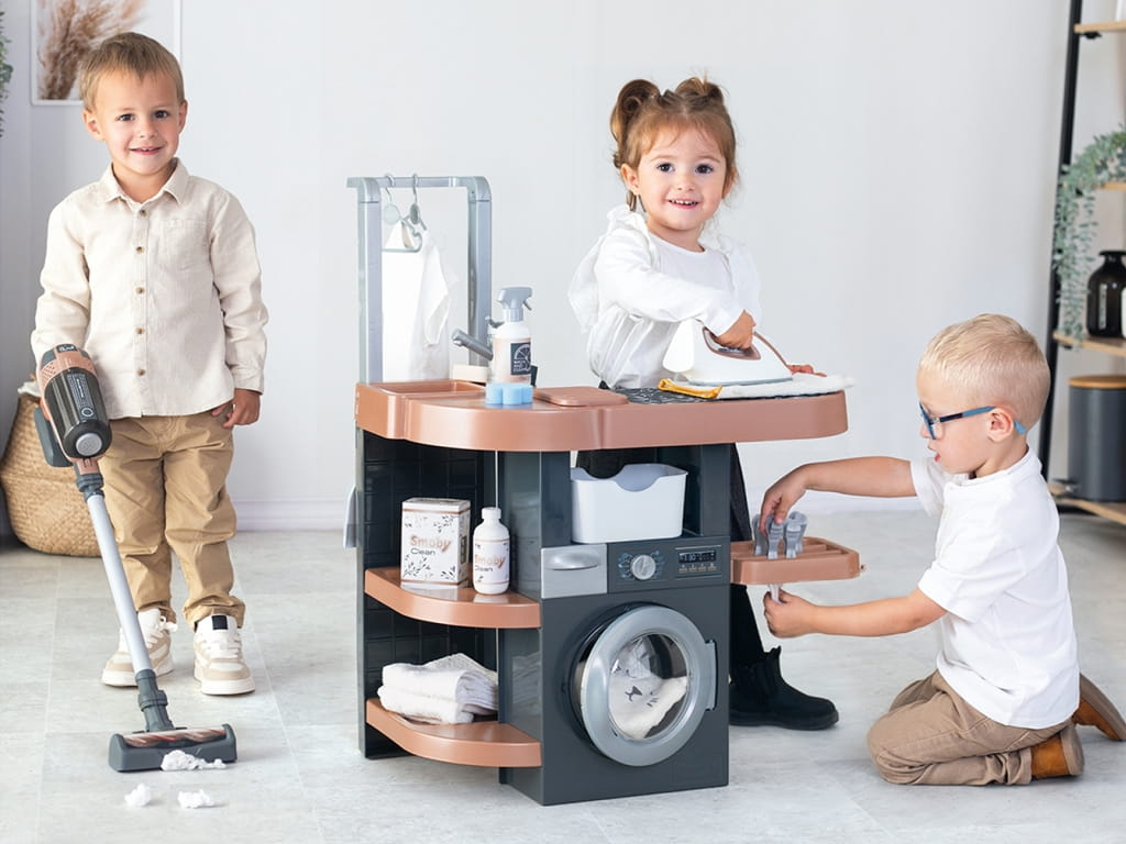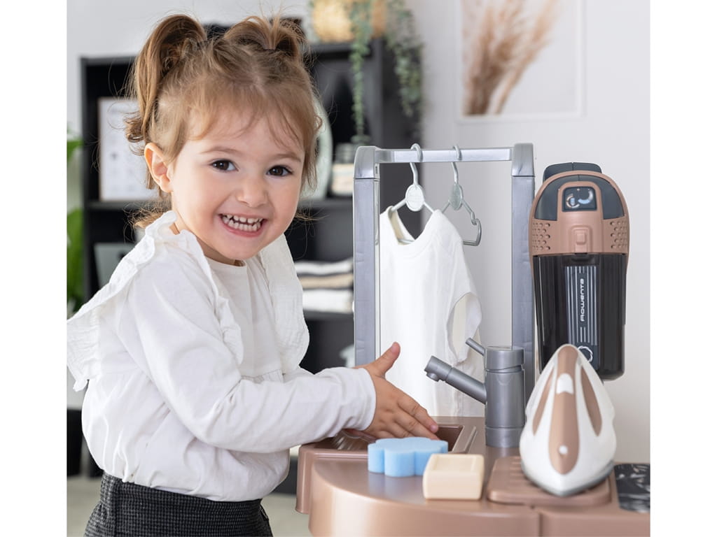 Το σετ νοικοκυριού rowenta της smoby, είναι το ιδανικό παιχνίδι για παιδιά από 3 ετών και άνω, που θέλουν να αναπαραστήσουν καθημερινές δουλειές του σπιτιού με τρόπο διασκεδαστικό και εκπαιδευτικό. Συνδυάζει τα πιο δημοφιλή θέματα παιχνιδιού: πλύσιμο ρούχων, σκούπισμα και σιδέρωμα, σε ένα συμπαγές και λειτουργικό προϊόν που ενθαρρύνει το παιχνίδι ρόλων και τη φαντασία.