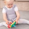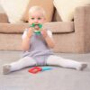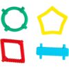 Το σετ περιλαμβάνει τέσσερα μασητικά παιχνίδια με μοναδικά σχήματα: 1 κίτρινο αστέρι, 1 μπλε ορθογώνιο, 1 πράσινο κύκλο και 1 κόκκινο ρόμβο, το καθένα με διαφορετικές υφές για να ενθαρρύνουν την απτική εξερεύνηση και να προσφέρουν ηρεμία και ιδιοδεκτική ανατροφοδότηση. Εκτός από την αρχική τους χρήση ως μασητικά, λειτουργούν και ως παιχνίδια “fidget”, καθιστώντας τα πολυχρηστικά στην ενίσχυση της αισθητηριακής ολοκλήρωσης.