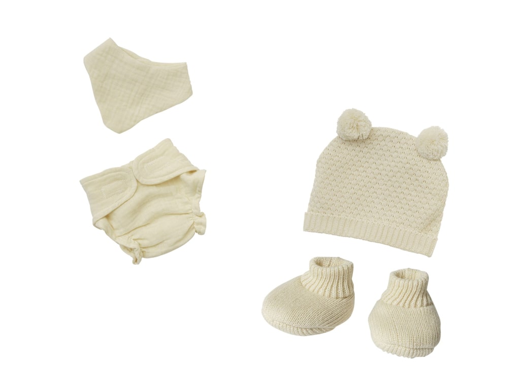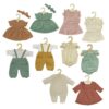 Το Σετ Ρούχων για Κούκλες 12 τεμ. (28–35 εκ.) περιλαμβάνει μεγάλη ποικιλία ενδυμάτων, όπως φορέματα, σαλοπέτες, φούστες, πλεκτά ρούχα, σώματα κούκλας και σετ μωρού, όλα κατασκευασμένα από 100% οργανικό βαμβάκι. Τα ρούχα είναι ποιοτικά, ανθεκτικά και εύκολα στο ντύσιμο, ενισχύοντας τη φαντασία και το παιχνίδι ρόλων των παιδιών.