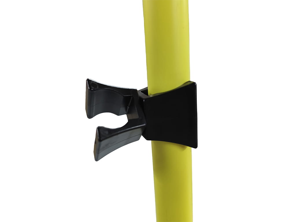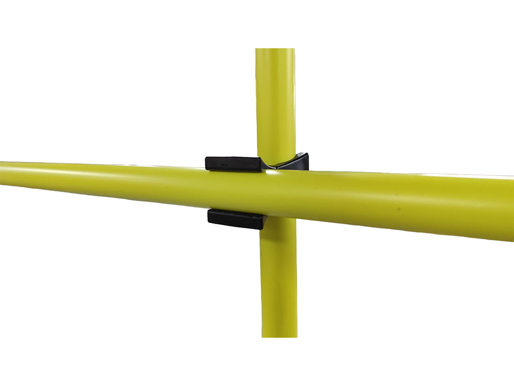 Αποτελείται από 3 πήχεις διαμέτρου 25 χιλ. και μήκους 160 εκ. σε κίτρινο χρώμα για μέγιστη ορατότητα, 2 περιστρεφόμενα συνδετικά για τη μεταβολή του ύψους και 2 επίπεδες πλαστικές βάσεις βάρους 700 γρ. η κάθε μία, υψηλής σταθερότητας σε μαύρο χρώμα για Ø25 & 30 εκ. Οι βάσεις επιτρέπουν την ασφαλή τοποθέτηση των πήχεων στο έδαφος, ενώ τα συνδετικά προσφέρουν εύκολη και γρήγορη αλλαγή διάταξης, ώστε να διαμορφώνεται το εμπόδιο στο επιθυμητό ύψος.