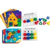 Σετ βίδες και παξιμάδια με κάρτες αυτό το σετ τα παιδιά θα βελτιώσουν τις λεπτές κινητικές δεξιότητες, τον συντονισμό χεριού ματιού, θα μάθουν τα χρώματα και τα σχήματα και θα καλλιεργήσουν τη λογική σκέψη τους. Ιδανικό παιχνίδι για νηπιαγωγεία και εργοθεραπευτές. Περιλαμβάνει 16 βίδες με διαφορετικά σχήματα στο κεφάλι τους, 16 μπουλόνια και 12 κάρτες δραστηριοτήτων. Μήκος βίδας: 6 εκ. Διαστάσεις καρτών: 21 x 24 εκ. Ηλικία: 18 μηνών και άνω.