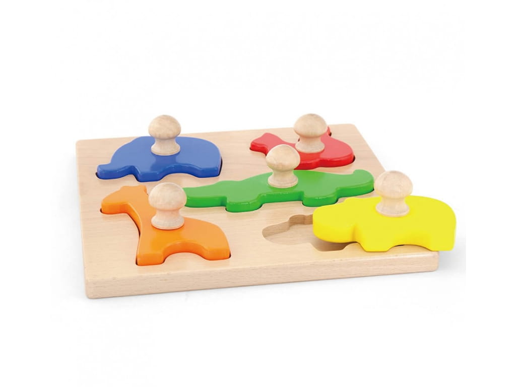 - Ξύλινο παζλ σφηνώματα με λαβούλες ζωάκια