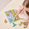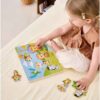 Το παζλ διαθέτει ξεκάθαρα σχέδια στη βάση που βοηθούν τα παιδιά να ταιριάξουν τα κομμάτια εύκολα, ενισχύοντας τις δεξιότητες αντιστοίχισης. Οι λείες ξύλινες λαβές έχουν το ιδανικό μέγεθος για μικρά χεράκια, επιτρέποντας στα παιδιά να τις πιάνουν άνετα και να παίζουν με ευκολία.