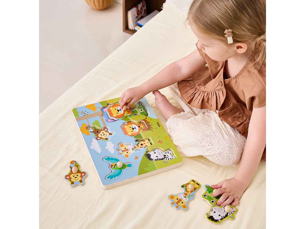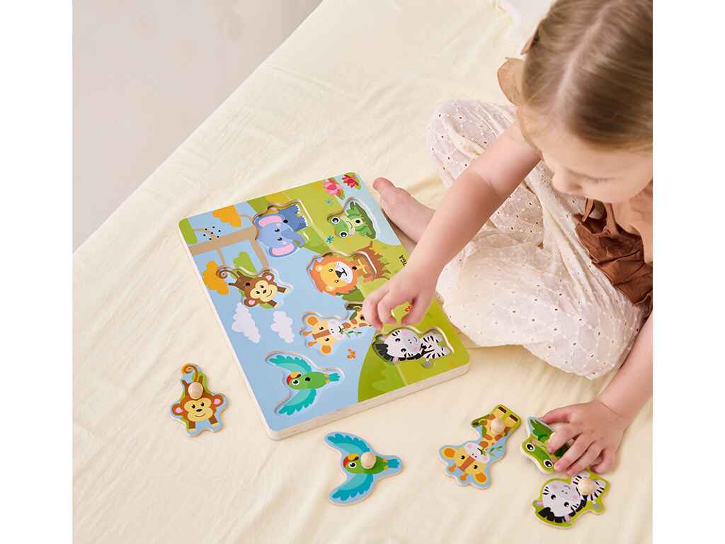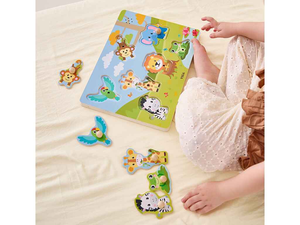 Κατασκευασμένο από ασφαλή και μη τοξικά υλικά, το παζλ είναι απόλυτα φιλικό για τα παιδιά. Παίζοντας, τα μικρά μαθαίνουν να αναγνωρίζουν τα άγρια ζώα, να αναπτύσσουν τη συγκέντρωση, τον συντονισμό χεριού-ματιού και τη λεπτή κινητικότητα.
