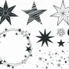 Σφραγίδες αστέρια, σε 10 διαφορετικά σχέδια και 5 διαφορετικά μεγέθη. Διαστάσεις: 4 x (1,5 x 1,5 εκ.) 1 x (3 x3 εκ.) 3 x (4 x 4 εκ.) 1 x (6 x 3 εκ.) & 1 x (6 x 6 εκ.)