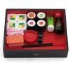 Shushi bar. Διασκεδαστικό σετ παιχνιδιού με ένα πλήρες σετ σούσι από ξύλινο υλικό. Περιλαμβάνει 1 ρολό California με 4 κομμάτια, 4 σούσι και 2 νιγκιρί, το σετ σερβίρεται σε ξύλινη θήκη για σούσι με σωληνάριο wasabi, ένα μπουκάλι σάλτσα σόγιας, ένα μπολ, ένα ζευγάρι ξυλάκια και θήκη. Εξάπτει τη φαντασία και ενθαρρύνει το παιχνίδι ρόλων. Ηλικία: 18 μηνών και άνω.