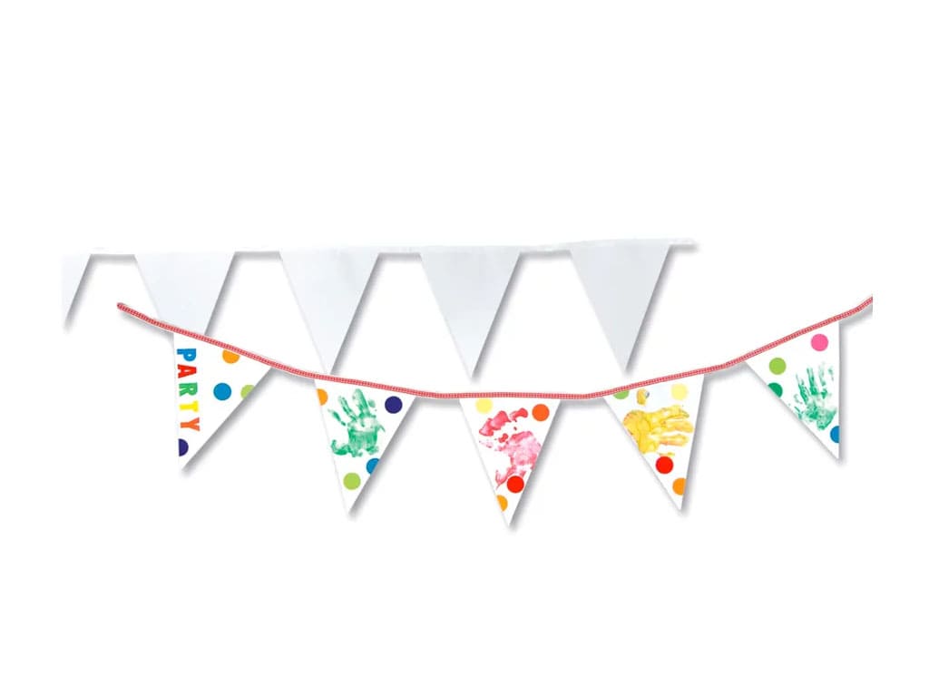 Σημαιάκια λευκά γιρλάντα. 15 σημαιάκια. Διαστάσεις σημαιάκια: 20 εκ. Μήκος γιρλάντας: 3.8 μ. 2 τεμάχια.