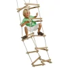 Τα σκαλοπάτια είναι ξύλινα, ενώ τα μεταλλικά στοιχεία (κρίκοι και οκτάρια) είναι κατασκευασμένα από γαλβανισμένο ατσάλι για μεγαλύτερη αντοχή στη διάβρωση. Η σκάλα συμβάλλει στην ενίσχυση της μυϊκής δύναμης, της ισορροπίας και του συντονισμού των παιδιών, προσφέροντας παράλληλα πολύτιμες ευκαιρίες για ελεύθερο παιχνίδι και άσκηση.