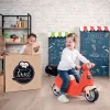 Το Σκούτερ ride-on θα ενθουσιάσει το παιδί σας με τον μοντέρνο και πολύχρωμο σχεδιασμό του. Με το αφαιρούμενο βαλιτσάκι αποσκευών, το μικρό σας μπορεί να προσποιηθεί ότι κάνει παράδοση γευμάτων. Χάρη στο ύψος του σκούτερ (47,5 εκ.), το μικρό σας θα μπορεί να το χρησιμοποιήσει από 18 μηνών. Το σκούτερ έχει επίσης 1 ρεαλιστικό μπροστινό μέρος, 1 μηχανικό κλειδί και 1 κουτί παιχνιδιών κάτω από το κάθισμα. Οι αθόρυβοι τροχοί εγγυώνται ευχάριστες και γαλήνιες βόλτες. Διαστάσεις: 77 x 34 x 47,5 εκ. Ηλικία: 18 μηνών+