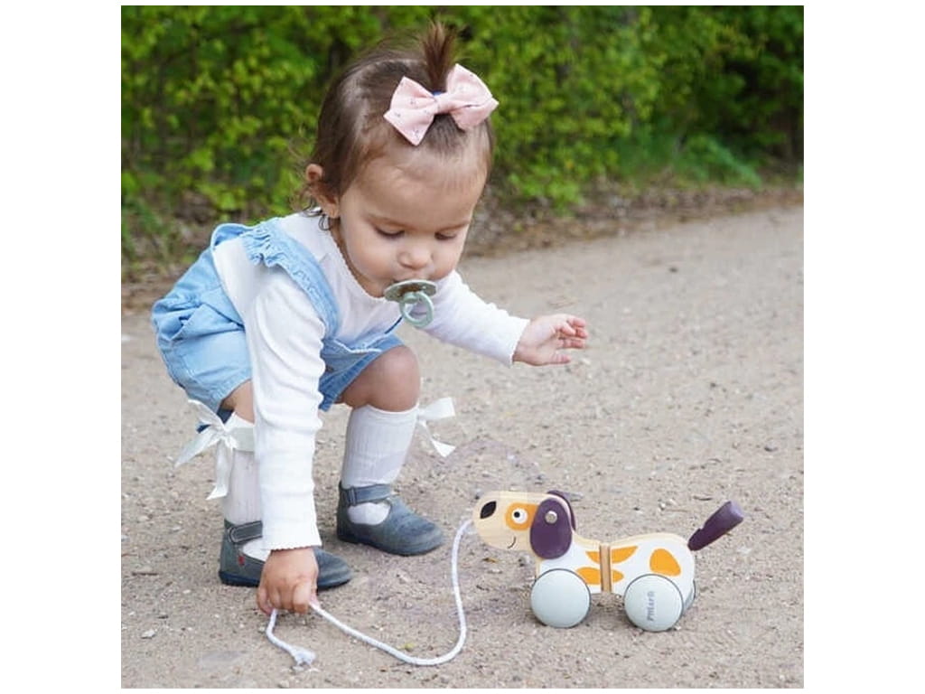 Το ξύλινο σκυλάκι pull along λειτουργεί ως αγαπημένος σύντροφος του παιδιού κατά τις βόλτες, ενθαρρύνοντας ταυτόχρονα το παιχνίδι και τη φυσική δραστηριότητα.