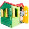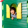 Κατασκευασμένο από ανθεκτικό πλαστικό υλικό υψηλής ποιότητας και απεριόριστης αντοχής. Με χαρούμενα χρώματα και δραστηριότητες για πολλές ώρες χαράς και παιχνιδιού. Διαθέτει ψηλή οροφή και ευρύχωρο εσωτερικό χώρο. Το πλαίσιο της πόρτας έχει ύψος 129 εκ. και μεγάλο μέγεθος για να χωράνε και μεγάλα παιδιά κάνοντας το σπίτι αυτό κατάλληλο για χρήση για πολλά χρόνια. Διαθέτει κουζίνα με νεροχύτη, εστία, τηλέφωνο και 4 μεγάλα παράθυρα με παραθυρόφυλλα.