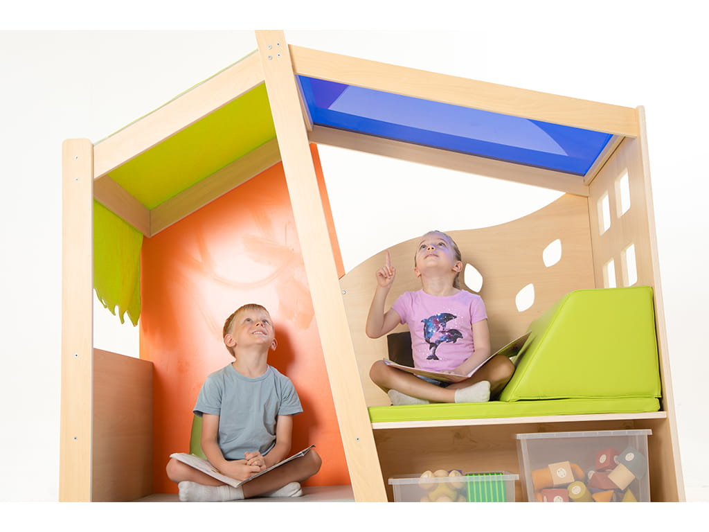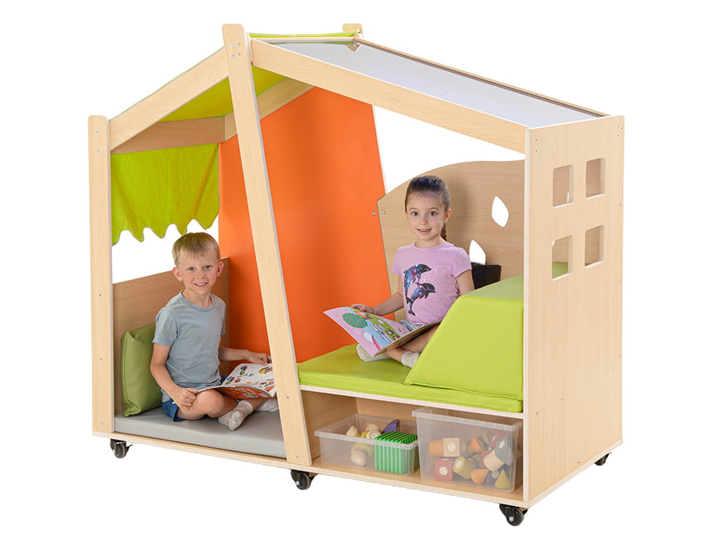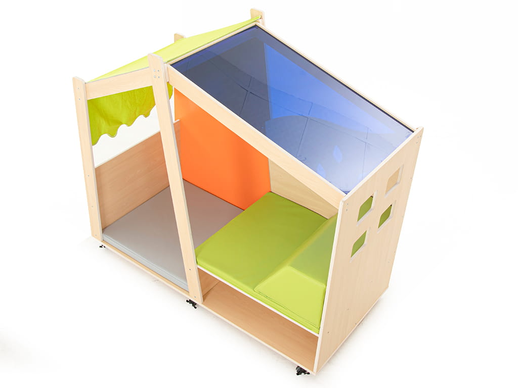 Το τροχήλατο σπιτάκι χαλάρωσης και παιχνιδιού αποτελεί έναν πολυλειτουργικό χώρο για εσωτερική χρήση, ιδανικό για παιδικούς σταθμούς, νηπιαγωγεία και χώρους δημιουργικής απασχόλησης. Σχεδιασμένο ως ένα άνετο καταφύγιο, προσφέρει στα παιδιά ένα ήρεμο περιβάλλον για ανάγνωση, παιχνίδι ή ξεκούραση.